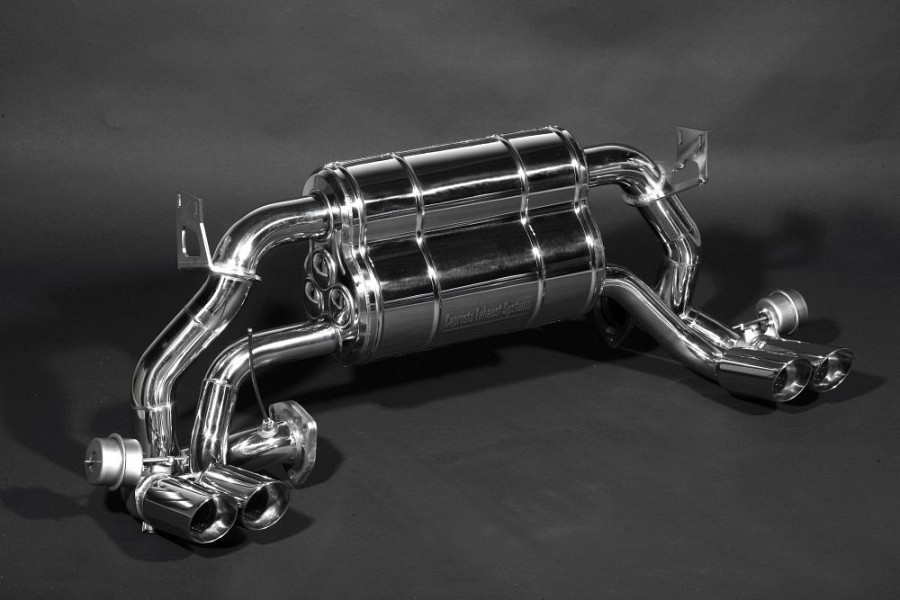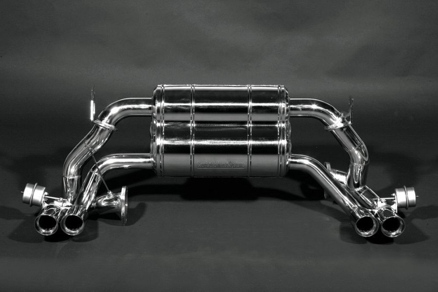 The valved Capristo Sports Exhaust System for the Ferrari 512 TR, 512 M & Testarossa cat version (1989 and up), is available in Sound Level 1 or 3, and is made from T309 stainless, polished steel.