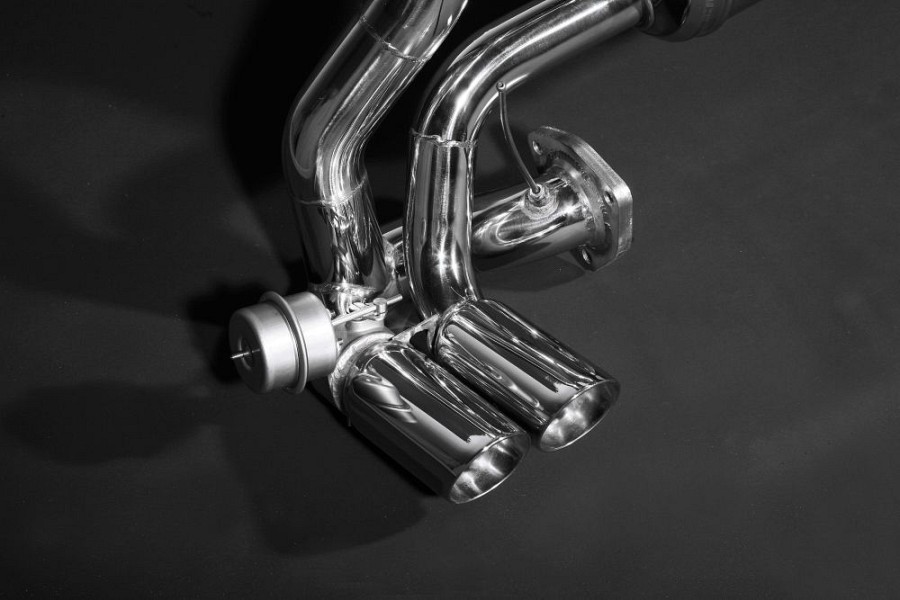 This system gives a huge performance advantage to the engine, which Capristo say is up to 30bhp. Most valve controlled exhaust systems on the market, open and close their valves depending on set values for RPM or speed. However, the important variable for the Capristo exhaust is backpressure. This system allows the exhaust valves to open at pre-set exhaust gas backpressure values, meaning it’s always optimised for the engine’s power.