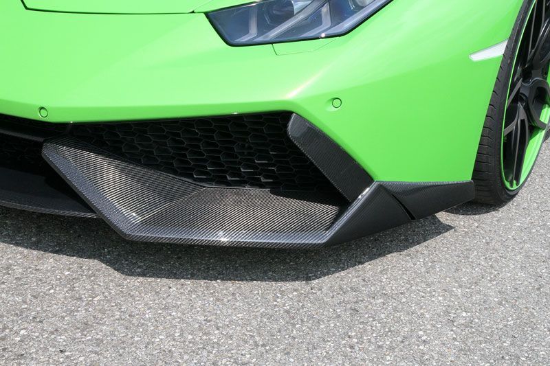 The Novitec Torado Front Spoiler Lip for the Lamborghini Huracan fits to the original bumper and supports the negative lift. Available in visible carbon fibre.