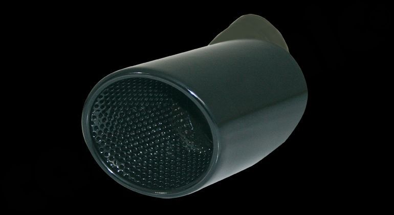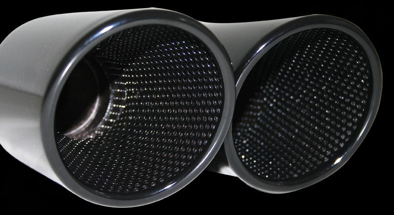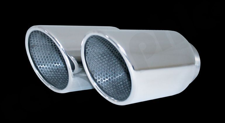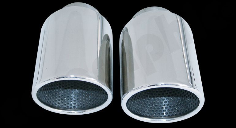 Stainless Steel Tailpipe Sets For use with Standard- or CARGRAPHIC rear Silencers 4x100mm round / rolled in with perforated insert Mirror polished
